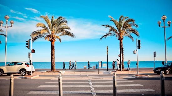 由出发城市搭乘班机飞往尼斯。