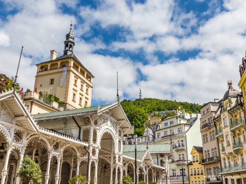 卡罗维发利是位于布拉格西部的小城镇,是捷克有名的温泉小镇。这里的温泉资源十分丰富,矿泉水从地下2000多米深处喷出。城内有几十个泉眼,每个泉眼喷出的泉水温度都不一样。这里的泉水中富含矿物质,来此观光的游客常会用瓶子接泉水饮用。