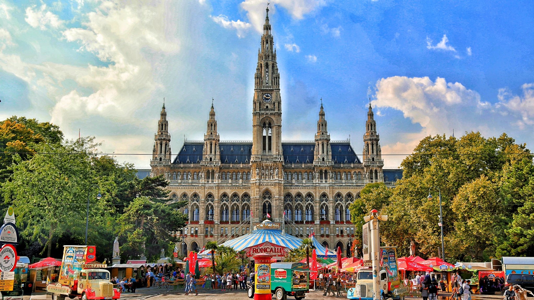 下午参观:维也纳市政厅;奥地利国会大厦;国家歌剧院;霍夫堡宫;斯蒂芬大教堂