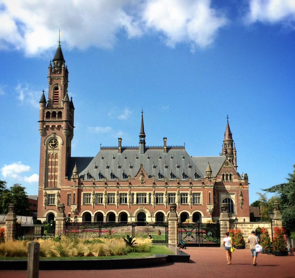 B:设在海牙城中和平宫的国际法庭是联合国的六大机构之一。1899年和1907年,两次世界和平大会在海牙召开,决定建立国际仲裁常设法庭,和平宫就为此而建。美国企业巨头卡内基捐助150万美元作经费,1913年竣工。在建设过程中,各国政府大都捐献了建筑材料或珍贵的工艺品,象征世界各国协力缔结和平之意,其中,有中国捐献的两对明代景泰蓝大瓷瓶(古礼器)。第一次世界大战后,国际联盟将其仲裁常设法庭设在和平宫。第二次世界大战后,联合国取代了国际联盟,国际法庭入驻和平宫。