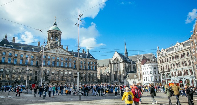 B:水坝广场(Dam Square),又称作达姆广场,位于阿姆斯特丹的心脏地带,广场形状大致呈⻓方形,东⻄⻓200米,南北约100米,曾经是阿姆斯特丹唯一的市中心广场。 阿姆斯特河曾经流经广场,河上的第一个水坝就建在这里,因此得名。王宫前的阿姆斯特河汊在1858年后才被填平,而阿姆斯特丹这一名称的本意也是阿姆斯特尔水坝,因此水坝干场应该说意义深远。