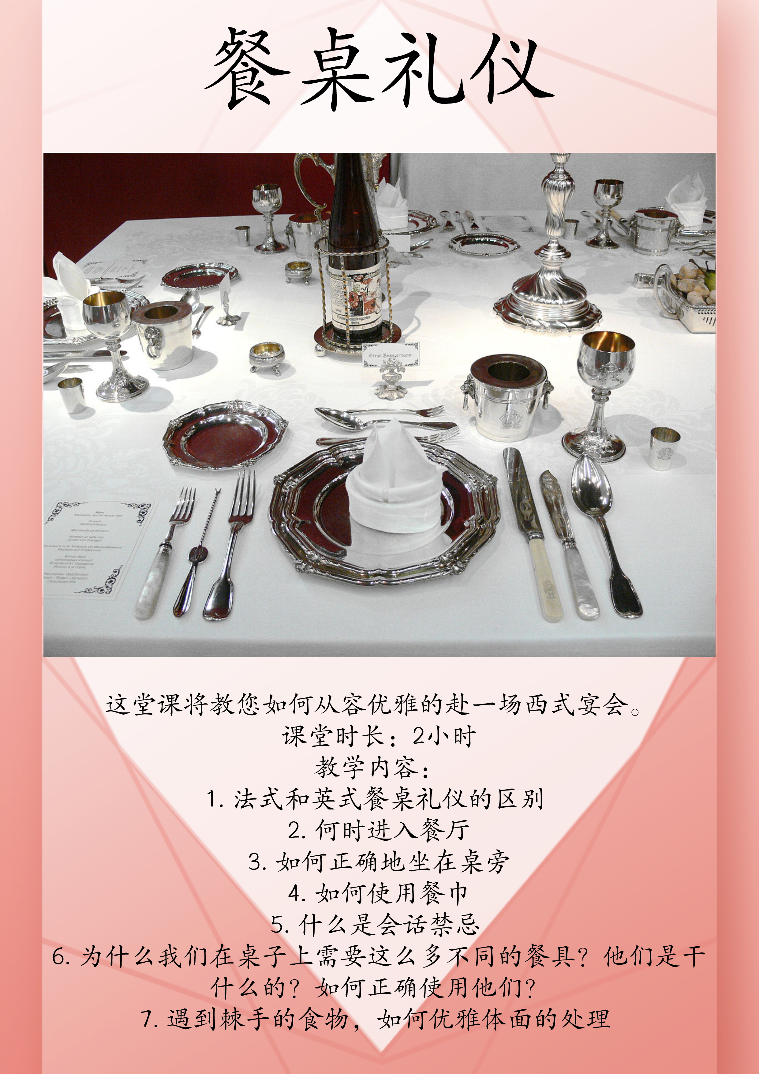 【当地特色】 西式餐桌礼仪指导课程